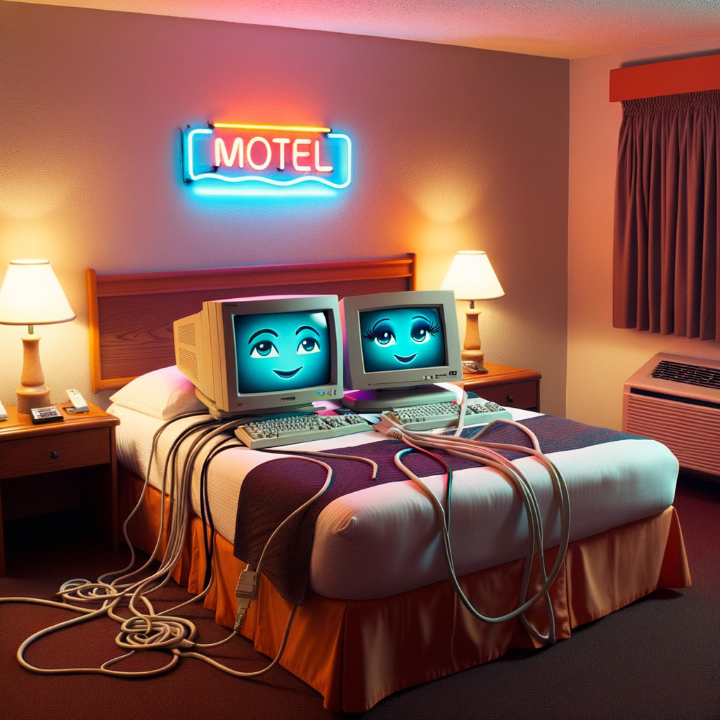 One evening he arrived home just as the sun was crashing and had parked his Motorola 68000 in the main drive (he had missed the S100 bus that morning), when he noticed an elegant piece of liveware admiring the daisy wheels in his garden. He thought to himself, “She looks user-friendly. I’ll see if she’d like an update tonight.”