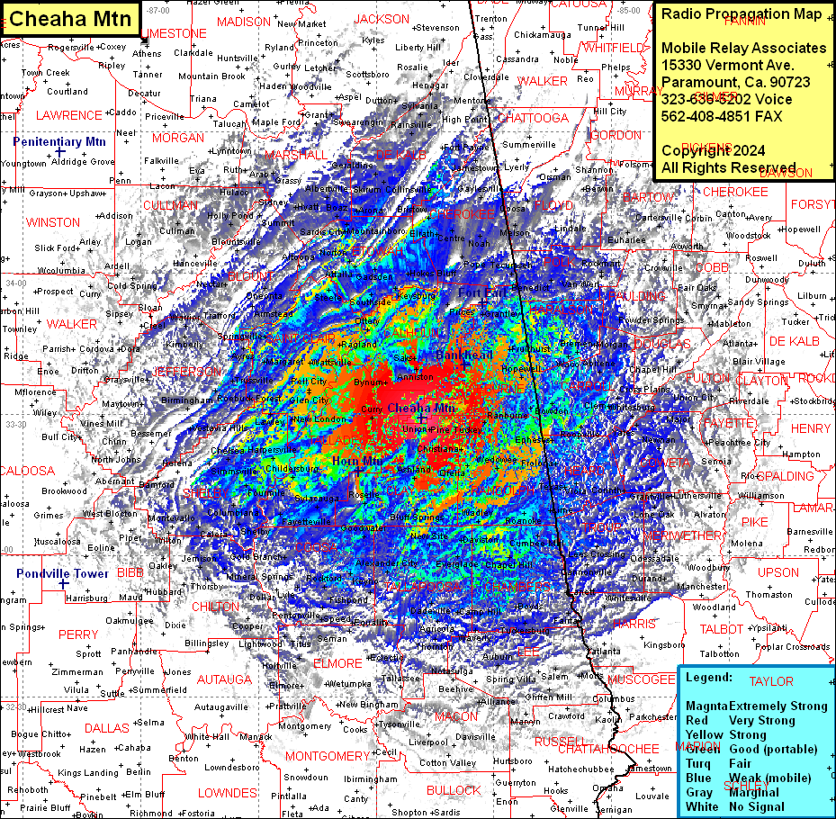 Site Coverage: Coverage of Cleburne County, Haralson County, Carroll County, Heard County, Randolph County, Clay County, Talladega County, Calhoun County,Saint Clair County, Etowah County, Polk County, most of Floyd County, Cherokee County, De Kalb County, Blount County, most of Jefferson County, Coosa County, Tallapoosa County, Clay County, Randolph County, Heard County, Troup County, northwesern Harris County, parts of Elmore & Chilton Counties, most of Shelby County, parts of Bibb County, parts of Macon, Lee, Morgan and Russell Counties