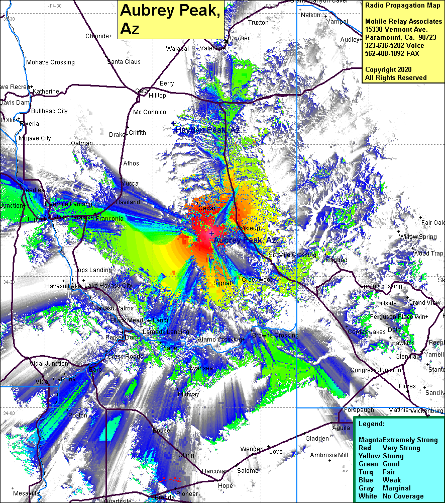 Site Coverage: Coverage of Wikieup, Cedar, Six Mile Crossing, Bagdad, Greenwood, Signal, Browns Crossing, Alamo Crossing, Swansea, Midway, Planet, Cross Roads, Calzona, Cienega Springs, Franconia, Haviland, Yucca, Parker Jct, Needles