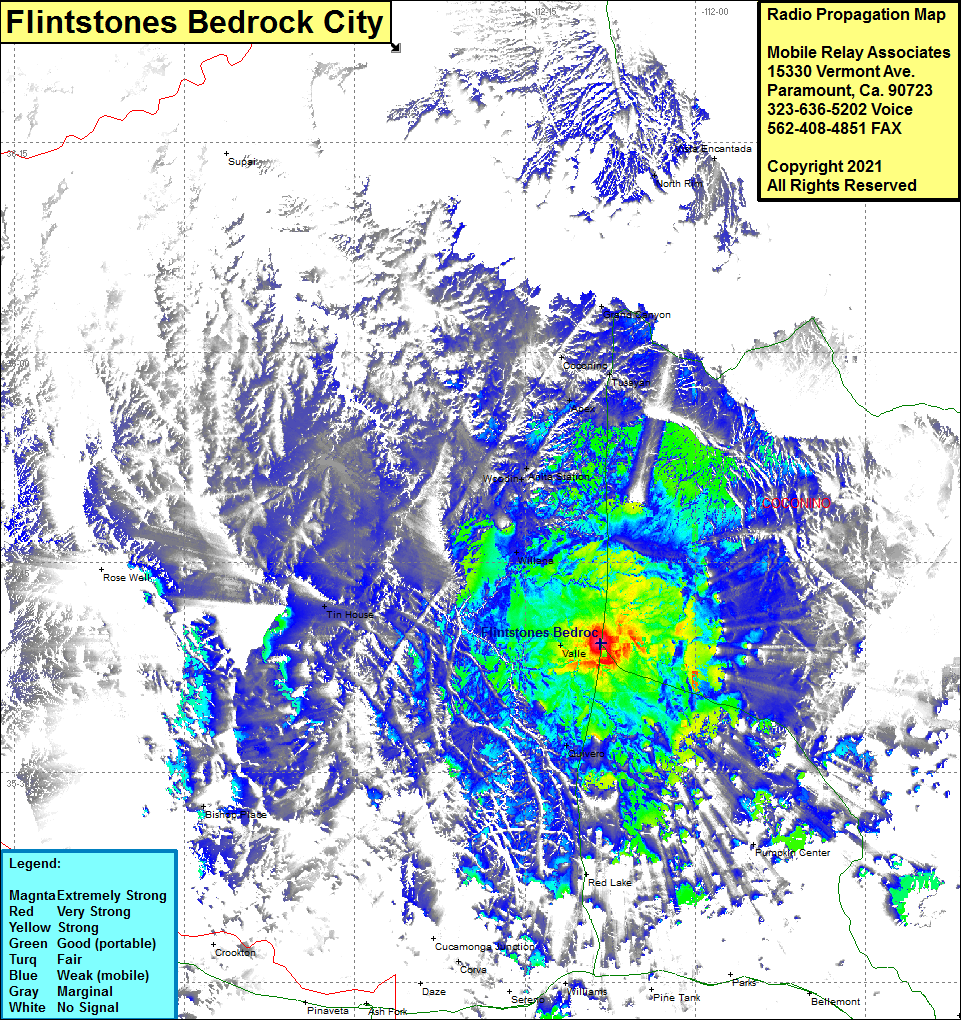 Site Coverage: Coverage of Flintstones Bedrock City, Valle, Quivero, Bishop Place, Tin House, Willaha, Woodin, Anita Station, Apex, Tusayan, Coconino, Arizona Highway 64 from Williams to the Grand Canyon Village and US Highway 180 from Flintstones Bedrock City until about 20 miles east