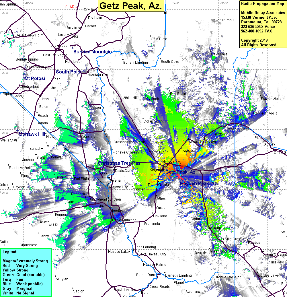 Site Coverage: Coverage of Hilltop, Stockton, Walapai, Drake, McConnico, Harris, Griffith, Athos, Kingman, Grasshopper Jct, Yucca, Antares, Crozier, Truxton, Valentine, Chloride, Parker Jct, Needles, Arrowhead Jct, Wikieup, Hilltop, Berry, Santa Claus, Mojave Crossing