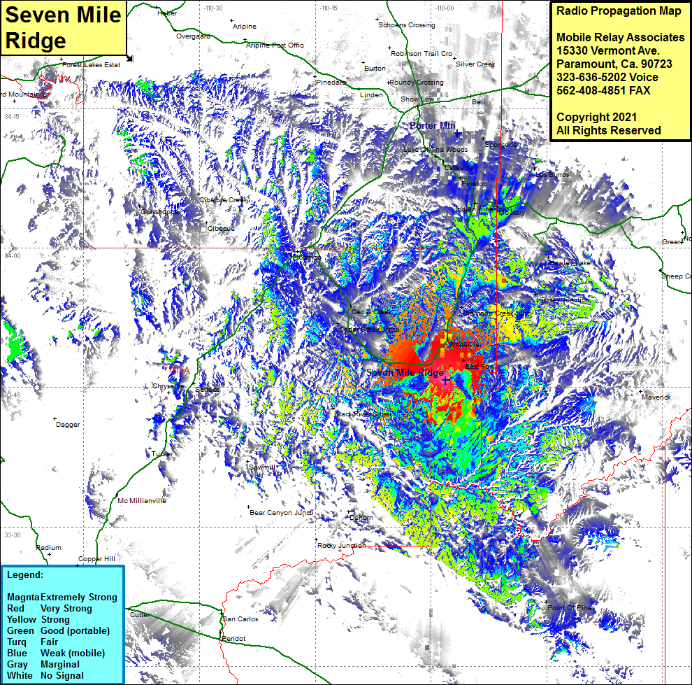 Site Coverage: Coverage of Fort Apache Junction, East Fork, Whiteriver, Diamond Creek Junction, Cedar Creek, Cedar Creek Crossing, Black River Crossing, Kinney Junction, Cibecue Creek, Grasshopper, Hawley Lake, Indian Pine, McNary, Lake of The Woods, Lakeside, Pinetop, Arizona Highway 73 from the junction of US60 to Arizona Highway 260 at Indian Pines with some coverage from Arizona Highway 260 until Show Low