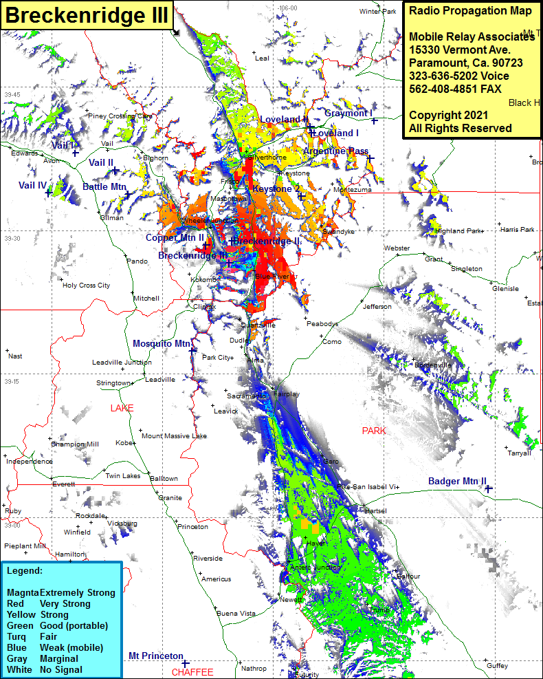 Site Coverage: Coverage of Breckenridge, Blue River, Dyersville, Lincoln, Swandyke, Silverthorne, Keystone, Frisco, Colorado Highway 9 from north of Quartzville to north of Silverthorne, Wheeler Junction