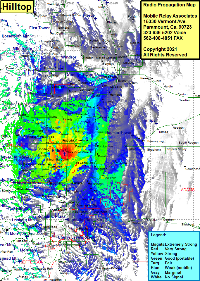 Site Coverage: Coverage of Lyons, Altona, Hygiene, Morey, Liberty, Mead, Highland Lake, Berthud, Berts Corner, Campion, Welty, Buda, Elwell, Loveland, Kings Corner, Browns Corner, Redmond, Windsor, Gove, Lory, Hardman, Johnstown, Adna, Elm, Dent, Garden City, Greeley Junction, Mason Corner, Lucerne, Lowe, Cloverly, Alden, Auburn, Evans, LaSalle, Hambert, Gilcrest, Houston, Wildcat, Bunyan, Walker, Gowanda, Platteville, Maddux, Ione, Vollmar, Harney, Jessum, Frederick, Firestone, Dacono, Puritan, Plumbs, Gooding, Liggett, Leyner, State Coal Mine Junction, Saint Vrains. Fort Lupton, Powars, Hudson, Roy, Tonville, Brighton, Barr Lake, Henderson, Hazeltine, Rolla, Federal Heights, Northglenn, Eastlake, Broomfield, Semper, Commerce City, Montbello, Sable, Magee, Sandown, Watkins, Manila, Aurora, Wallace Village, Broomfield, Superior, Marshall, Louisville, Lafayette, Ninemile Corner, Paragon Estates, Plainview, Clay, Rocky, Mount Olivett, Paragon Estates, Valmont, Liggett, Leyner, Tabor, Ara, Boulder, Altona, Hygiene