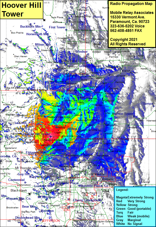 Site Coverage: Coverage of Boulder, Altona, Lyons. Noland, Pinewood Springs, Berts Corner, Berthoud, Campion, Kings Corner, Loveland, Browns, Corner, Redmond, Timnath, Kerns, Windsor, Greeley Jct, Masorn Corner, Lucerne, Eator, Gates, Severance, Hurrich, Ault, Stage, Pierce, Purcell, Galeton, Lowe, Alden, Alburn, East LaSalle, Hambert, Elm, Adna, Dent, Johnstown, Hardman, Elwell, Welty, Buda, Bunyan, Wildcat, Walker, Houston, Gilcrest, Platteville, Gowanda, Liberty, Kirkland, Longmont, Marnett, Hygiene, Dominion, Pleasant View Ridge, Jessum, Frederick, Firestone, Harney, Vollmar, Old Fort Vasquez, Ione, Fort Lupton, Hudson, Tonville, Barr Lake, Brighton, Powars, Hi-Land Acres, Saint Vrains, State Coal Mine Jct, Plumbs, Gooding, Leyner, Ninemile Corner, Lafayette, Louisville, Paragon Estates, Superior, Marshall, Broomfield, Eastlake, Henderson, Hazeltine, Rolla, Northglenn, Federal Heights, Semper, Wallace Village, Plainview, Rocky, Clay, Leyden Junction, Mount Olivet, Commerce City, Montbello, Sable, Sandown, Zuni, Wheat Ridge, Magee