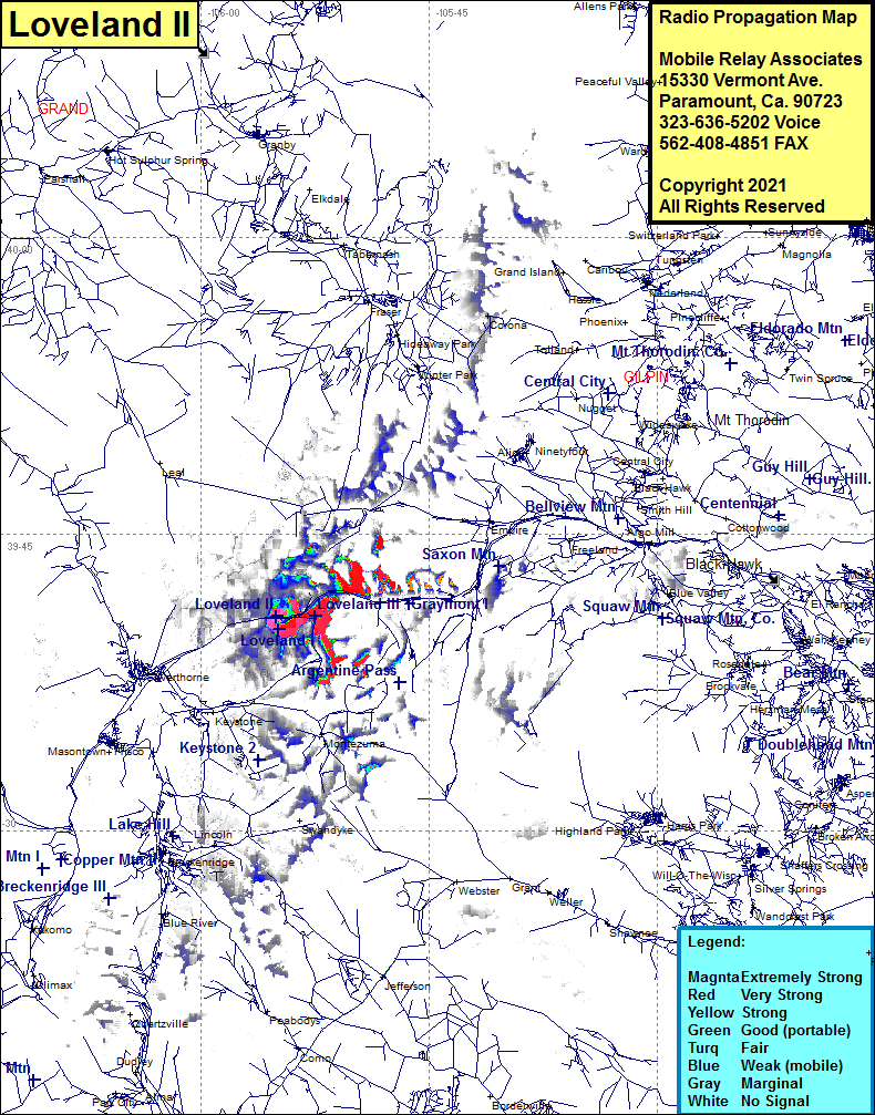 Site Coverage: Coverage of Loveland Ski Area and Interstate I70 east from the continental divide at the Eisenhower tunnel to just beyone Herman Gulch Road plus portions of US Highway 6 in the Loveland area