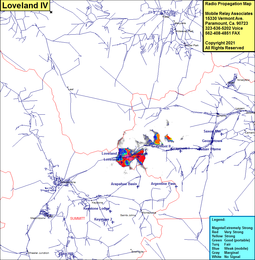 Site Coverage: Coverage of Loveland Ski Area and Interstate I70 east from the continental divide at the Eisenhower tunnel to just beyone Herman Gulch Road plus portions of US Highway 6 in the Loveland area