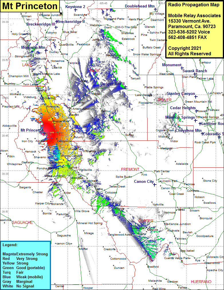 Site Coverage: Coverage of Buena Vista, Americus, Riverside, Princeton, Granite, Nathrop, Centerville, Turret, Borwns Canyon, Smeltertown, Poncha Springs, Salida, Wellsville, Vallie, Hillside, Westcliffe, Querida, Haver, Garo