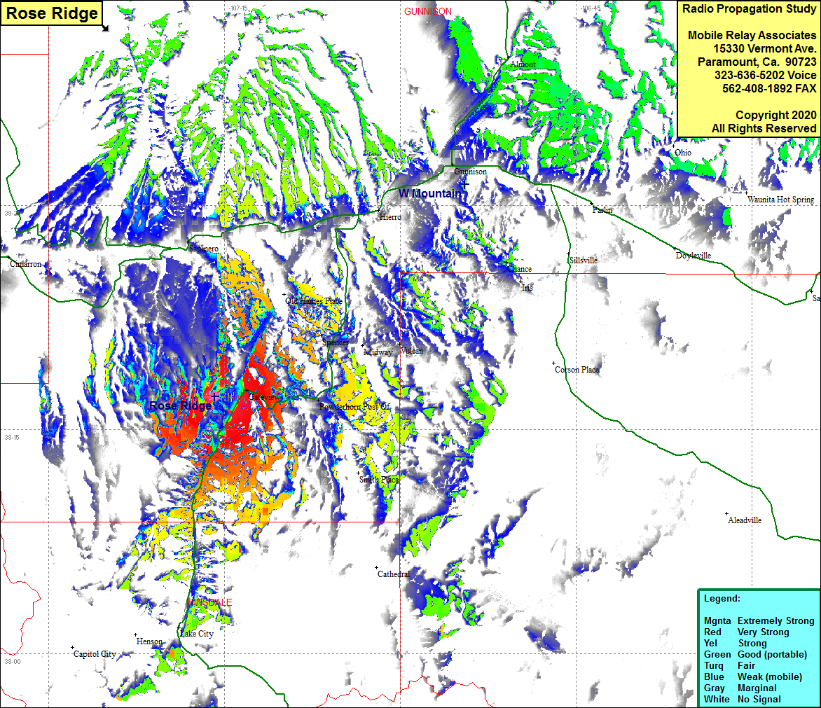 Site Coverage: Coverage of Gateview, Powderhorn Post Office, Spencer, Vulcan, Highway 149 from Lacke City in the south to the Powderhorn Post Office