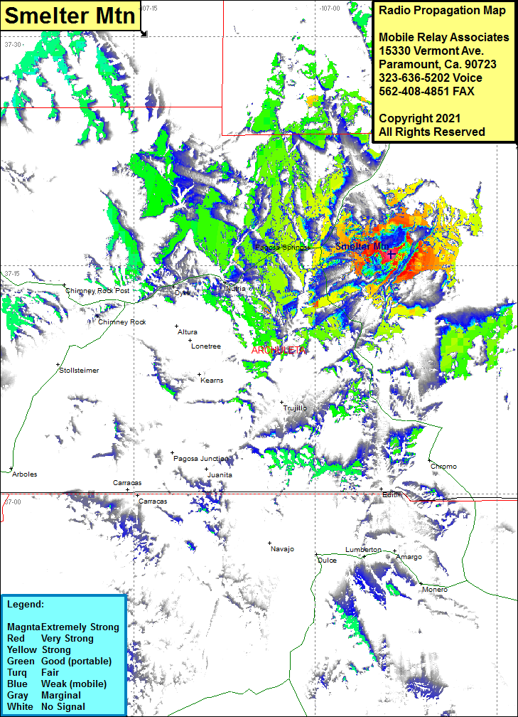 Site Coverage: Coverage of Pagosa Springs, Nutria, Dyke, portions of US Highway 80 through Pagosa Springs area and US Highway 84 heading south from Pagosa Springs