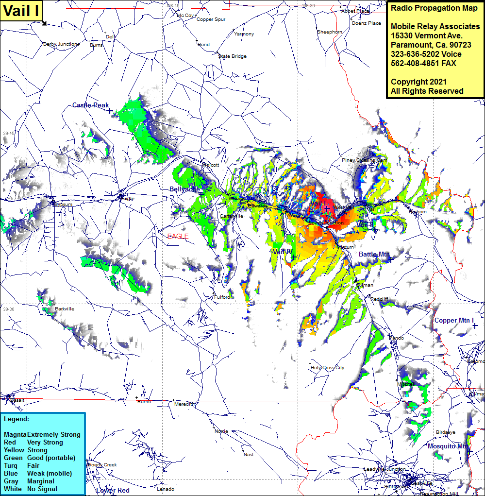 Site Coverage: Coverage of Vail, Avon, Wilmor, Gilman, Interstate 70 from Vail to Wolcott