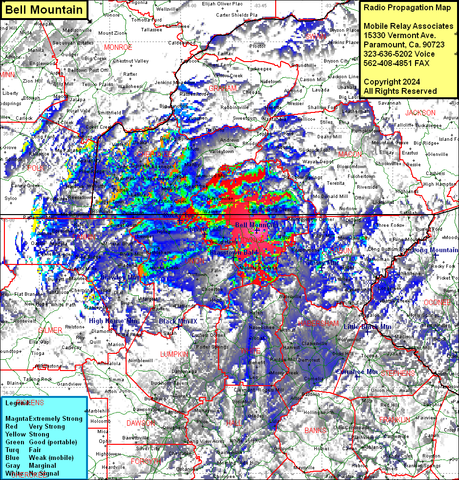 Site Coverage: Coverage of Towns County, most of Union, Fannin, White, Rabun, Habersham, Cherokee (NC), Clay (NC) and Stephens Counties, some of Lumpkin, Dawson, Forsyth, Hall, Oconee (SC), Pickens (SC), Anderson (SC), Hart, Franklin, Banks, Madison, Jackson, Barrow, Glimer, Murray, Polk (TN), Bradley (TN), Monroe (TN), Macon (NC), Jackson (NC), Swain (NC) and Graham (NC) Counties