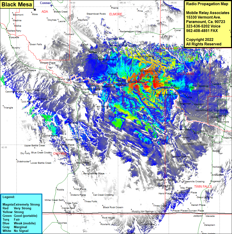Site Coverage: Coverage of most of Gooding County, southern Elmore County, Emigrant Crossing, King Hill, Stout Crossing, Ticeska, Pilgrim Stage Station, Bliss, Fuller, Gooding, Tunupa, Shoshone, Tuttle, Wendell, Hagerman, Appleton, Hydra, Herome, Barrymore, Knull, Filer, Peavey, Cedar, Buhl, Clover, Berger, Deep Creek, Fairview, Castleford, Clover, Tuanna Crossing, Roseworth, Anderson, Hot Springs, Hot Spring, Wycross, Collier, Bruneau, Emigrant Crossing, Indian Cove, Grand View, Orchard, Cleft, Sebree, Mountain Home, Reverse, Chalk Cut