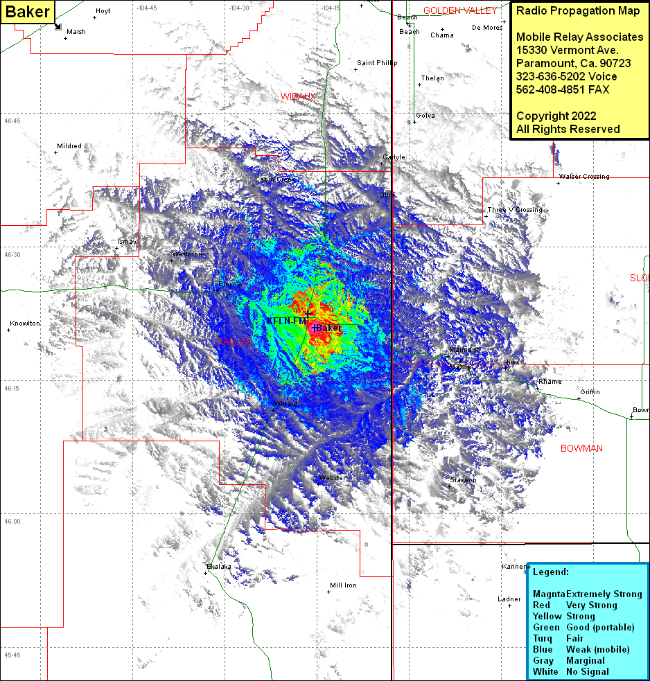 Site Coverage: Coverage of Baker, Carlyle, Ollie, Three V Crossing, Marmarth, Mazda, Ives, Srawson, Webster, Willard, Plevna, Westmore, Cabin Creek