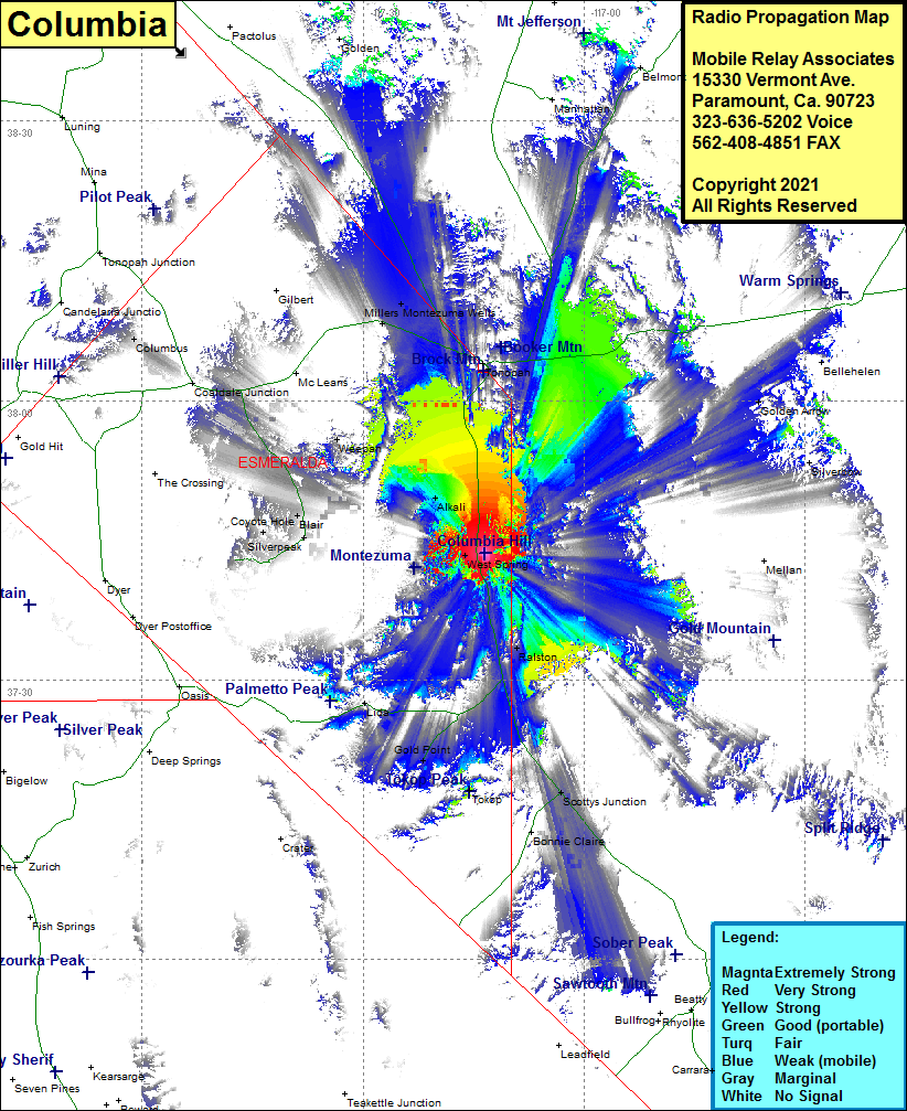 Site Coverage: Coverage of West Springs, Ralston, Weepah, Alkali, Tonopah, Blair, Coyote Hote, Columbus, Millers, Montezuma Wells, Coaldale Jct, US Highway 95 from Scottys Junction to north of Montezuma Wells