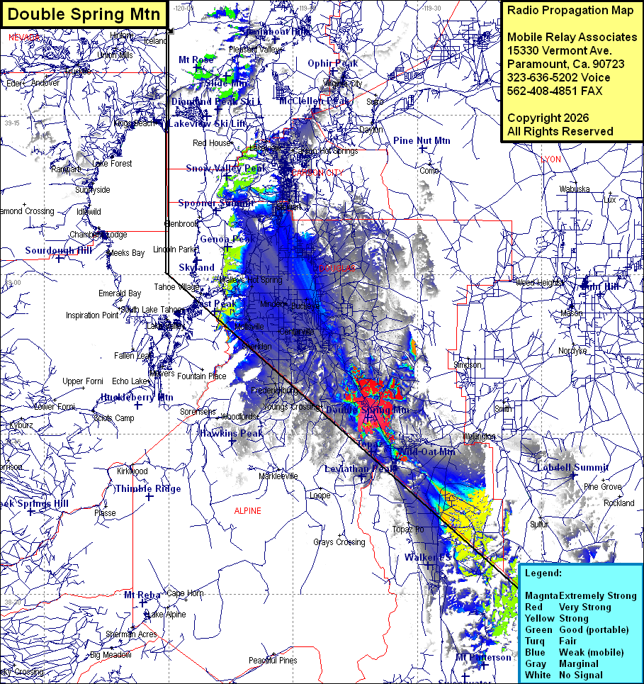 Site Coverage: Coverage of Double Spring, Topaz, Coleville, Holbrook Junction, US395 from Coleville to Double Spring, Youngs Crossing, Woodfords, Paynesville, Frederickburg, Sheridan, Centerville, Dresslerville, Gardnerville, Minden, Buckeye, Mottsville, Walleys Hot Spring, Genoa, Stewart, Carson City, New Empire, Empire, Carson Hot Spring