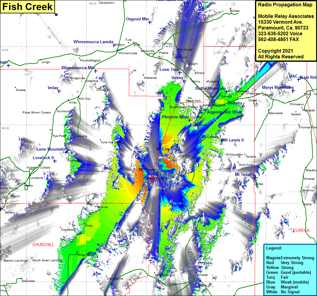 Site Coverage: Coverage of the northwest portion of Lander County, Bannock, Galena, McCoy, Rosny, Dixie Valley, Dixie, portions of Nevada Highway 305 from Austin to Interstate 80 at Battle Mountain, Interstate 80 from 1 mile west of Battle Mountain to 10 miles east of Battle Mountain, Rock Creek Road for about 30 miles