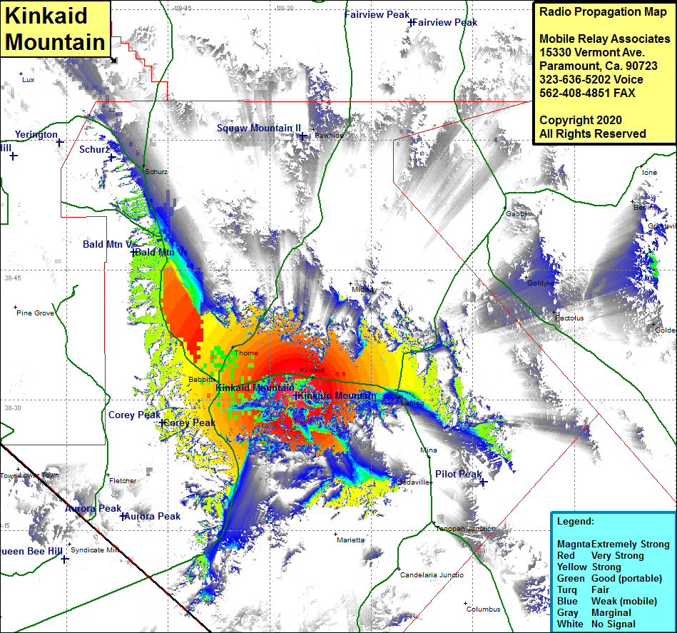 Site Coverage: Coverage of the central portion of Mineral County, Nevada Highway 359 through Hawthorne and north past Throne, US Highway 95 from Hawthorne to Schurz and from Hawthorne to Luning, Hawthorne, Kinkaid, Luning, Babbitt, Thorne, Schurz