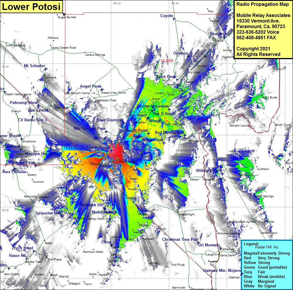 Site Coverage: Coverage of Calada, Roach, Borax, Jean, Goodsprings, Sandy, Yucca Grove, Valley Wells Station, Joshua, Brant, Ivanpah, Nipton, Moore, Vanderbilt, Barnwell, Henderson, Boulder Junction, Paradise, East Las Vegas, Bracken, Winchester, Las Vegas, North Las Vegas, Wann, Valley, Novell, Dike, Apex, Arrolime, Crystal, Ute, Dry Lake, Pahrump, Johnnie, Sandy, Valjean, Yucca Grove, Valley Wells Station, Wheaton Springs, Chase, Lanfair, Hart, Barnwell