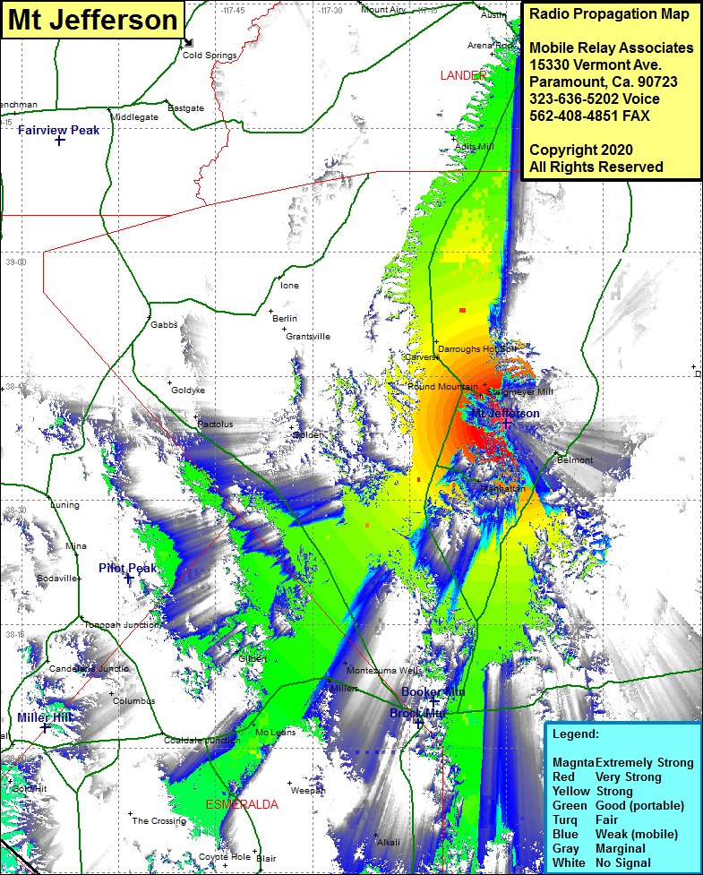 Site Coverage: Coverage of the northern portion of Nye County, Steigmeyer Mill, Round Mountain, Carvers, Darroughs Hot Springs, Manhattan, Belmont, Tonopah, Montezuma Wells, Millers, Gilbert, McLeans, Nevada Highway 376 from the intersection of US Highway 6 heading north to US Highway 50, Nevada Highway 82 heading northeast from Nevada Highway 376 to several miles past Belmont