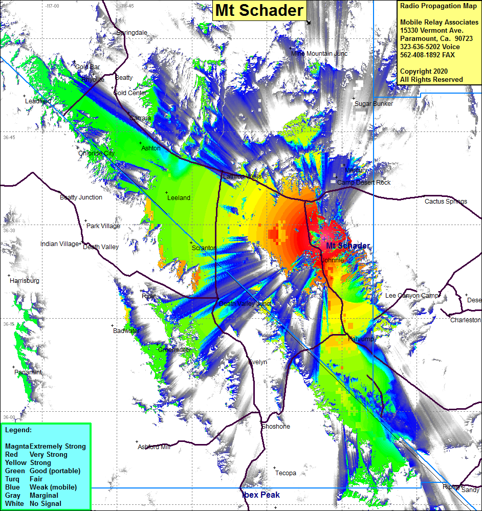 Site Coverage: Coverage of the Pahrump Valley, Pahrump, Johnnie, Leeland, Death Valley Junction, Ashton, Scranton, Camp Desert Rock, Mercury, Mine Mountain Jct, Carrara, Nevada Hwy 160 from Pahrump north to Nevada Hwy 95, Nevada Hwy 95 from Camp Desert Rock west to Carrara, Rhyolite, Springdale