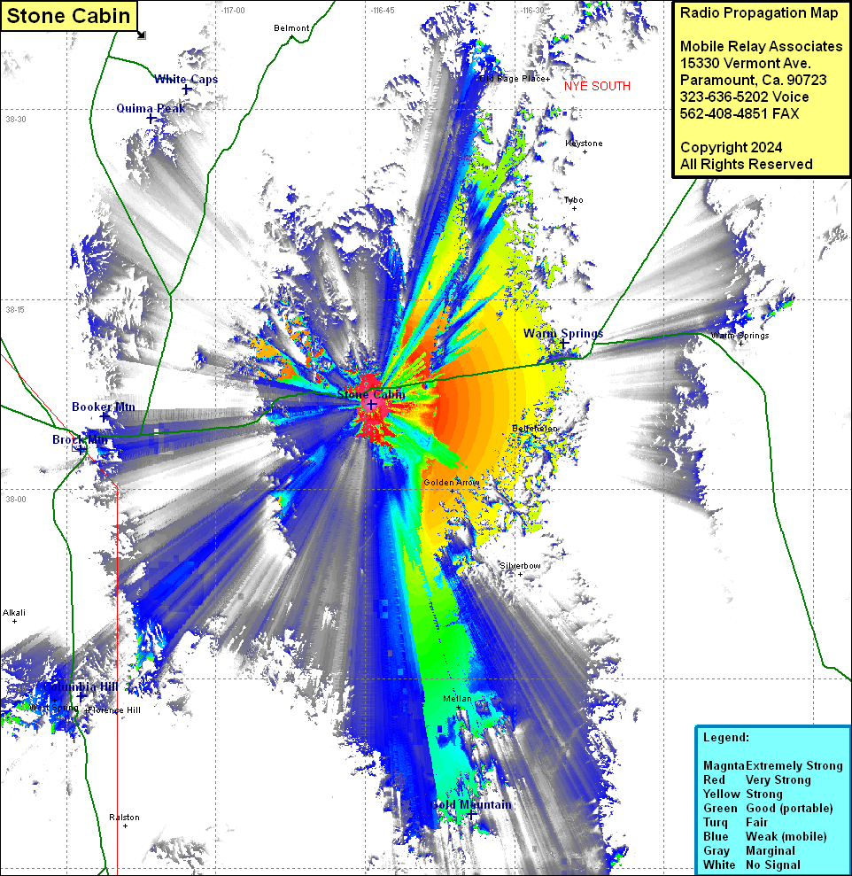 Site Coverage: Coverage of Warm Springs, a portion of US Highway 6, Golden Arrow, Mellan, Bellehelen, Tonopah, Florence Hill, Goldfield, West Spring, Gemfield