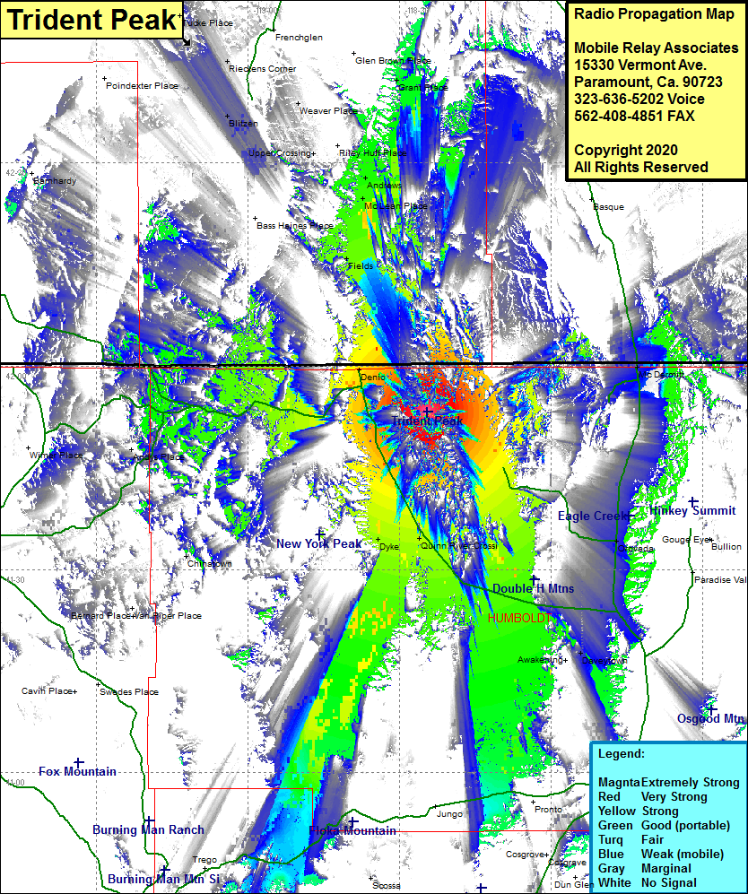 Site Coverage: Coverage of the northcentral portion of Humboldt County, Denio, Denio Jct, Dyke, Quinn River Crossing, Sulphur, Raglan, Rose Creek, Cosgrave, Daveytown, Orovada, McDermitt, Burns Junction, Weaver Place, Upper Crossing, Andrews, McLean Place, Fields, Poe Place, Chinatown