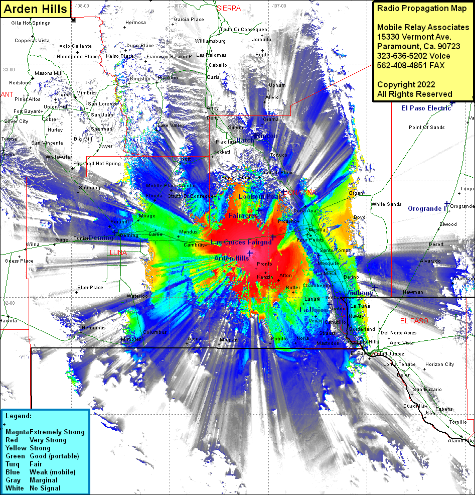 Site Coverage: Coverage of Las Cruces Fairgrounds, Las Cruces, Fairacres, Picasho, Tortugas, Mesilla, Four Points, Dona Ana, Leasburg, Radium Springs, Kimball Place, Tonuco, Arigostura, Grama, Alivio, Upham, Desert, Pronto, Kenzin, Afton, Rutter, Lanark, Vevay, Strauss, Mastodon, Noria, Potrillo, Lizard, Coronado Hills, Montoya, Orange, Borderland, Canutillo, La Union, Vinon, La Tuna, Anthony, El Ojito, Chamberino, Berino, La Mesa, Vado, San Miguel, Santo Tomas, Mesquite, Socorro, Buford, San Elizario, Fabens, Aden, Malpais, Arena, Columbus, Mimbres, Waterloo, Hermanas, Chappel, Dona, Cambray, Myndus, Carne, Mirage, Deming, Tunis, Florida, Middle Place WIndmill, Truth or Consequences, Nutt, Hockett, Spalding, Faywood Hot Springs, Whitewater, Oak Grove, Lake Valley, Roday, Placitas, Hatch, Salem, Garfield, Dem, Arrey, Oasis