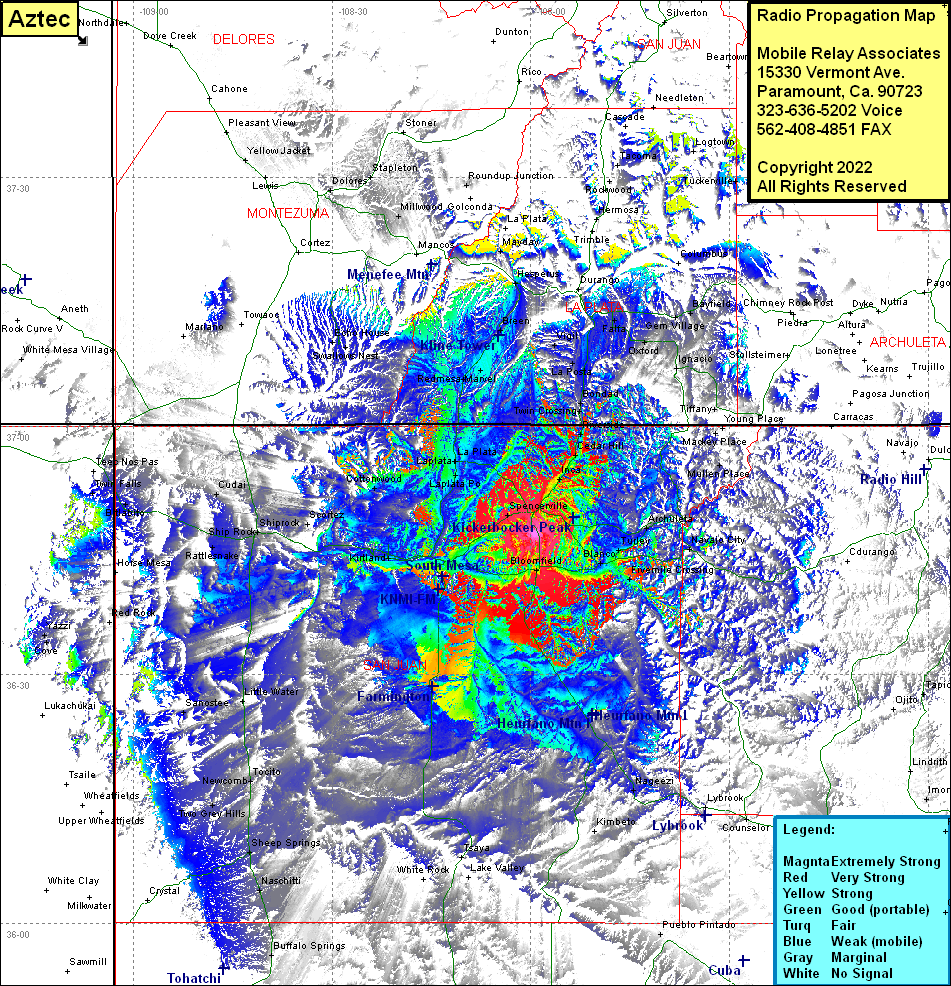 Site Coverage: Coverage of Aztec, Inca, Cedar Hill, Riverside, Twin Crossing, Bondad, La Posta, Vigil, Tuckersville, Loma Linda, Falfa, Florida, Gem Village, Bayfield, Oxford, Ignacio, Tiffany, Allison, Arboles, Archuleta, Locero Place, Mullen Place, Bloomfield, Blanco, Turley, Fivemile Crossing, Navajo City, Nageezi, Farmington, Kirkland, Fruitland, Waterflow, Shiprock, Rattlesnake, Little Water, Sanostee, Tocito, Newcomb, Sheep Springs, Toadlena, Two Grey Hills, Naschitti, Bullalo Springs, Highway 371 from Farmington heading south to Tsaya, US Highway 64 from Navajo City to Shiprock, US Highway 491 from Shiprock to Tsaya