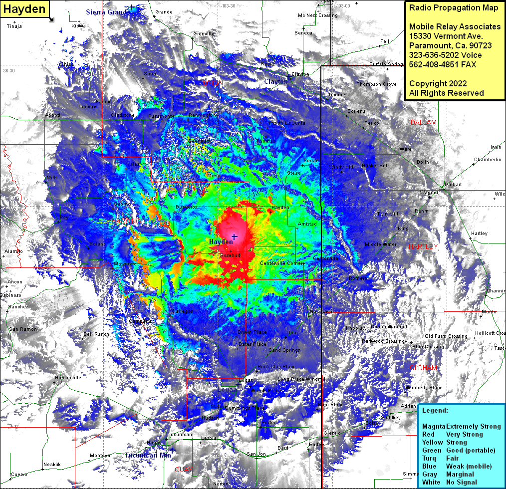 Site Coverage: Coverage of Amistad, Hayden, Stead, Sedan, Thomas, North La Junta, Windy Hill, Bunker Hill, Twin Mill, King, Rehm, Wagner, Dalhart, Bolin, Ware, Perico, Corlena, Texline, Thompson Grove, Coldwater, Felt, Moses, Seneca, Clayton, Royce, Rosebud Farms, Centerville Corner, Centerville, Middle Water, Romero, Nara Visa, Corner WIndmill, Ram Place, Glenrio, Endee, Bard, San Jos, Porter, Cumings Place, Woods Place, Long Place Windmill, Bunk Clay Place, Sand Springs, Brown Place, Logan, Rosebud, Gallegos, Hendricks Place, Mater, Hudson, Tucumcari, Lesora, Norton, Hargis, Campana, Bell Ranch, Mosquero, Solano, Hooverville, Conchas, Sanchez, Alamito, Bueveros, Otexline, Sabino, Miera, Yates, Beenham, Pennington, Pasamonte, Gladstone, Roy, Mills, Abbott, Tafoya, Farley, Sofia, Chico, Glenville