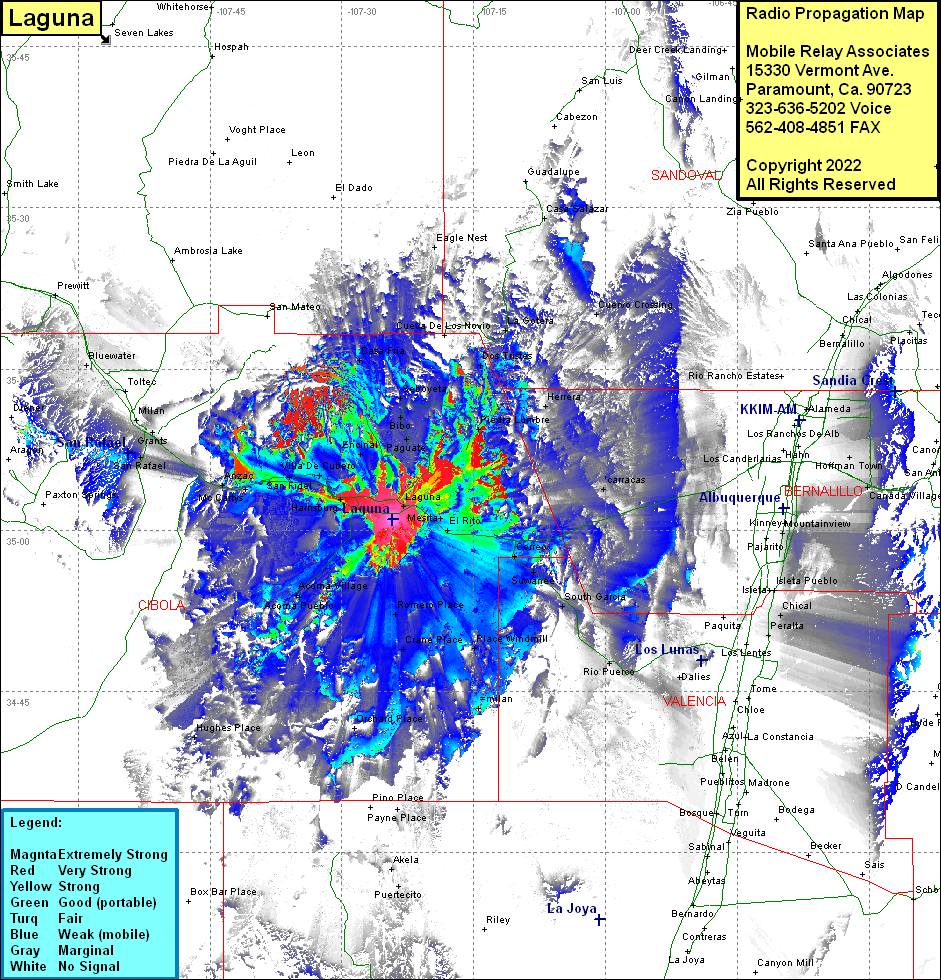 Site Coverage: Coverage of Laguna, Mesita, Paguate, Bibo, Seboyeta, Piedra Lumbre, Dos Tristes, Herrera, Carracas, Cueva De Los Novio, La Gotera, Cuervo Crossing, Eagle Nest, Casa Salazar, Kirtland Addition, Buena Ventura, Shelwood Place, Hoffman Place, Carnue, El Rito, Correo, Suwanee, South Garcia, Place WIndmill, Crane Place, Romero Place, Rio Puerco, Sandia, Dalies, Chical, Mountainview, Acoma Village, Orchard Place, Hughes Place, Casa Blanca, Paraje, Harrisburg, Budville, Acomita, Alaska, San Fidel, Villa De Cubero, Encinal, McCartys, Anzac, San Rafael, Grants, Milan, Toltec, Bluewater, Prewitt, Casa Fria