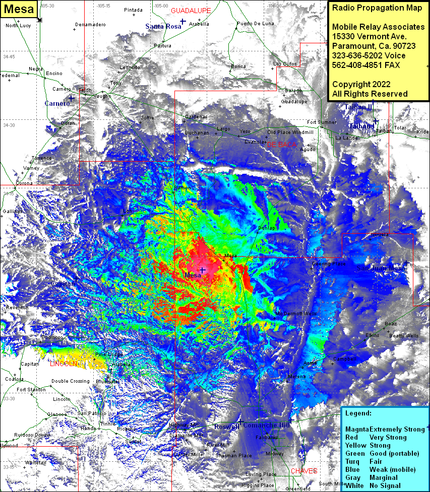 Site Coverage: Coverage of Mesa, Dunlap, Deering Place, Olive, Ciruela, Largo, Yeso, Old Place Windmill, Evanola, Comer Windmill, Ricardo, Agudo, Fort Sumner, La Lande, Taiban, Krider, Cantara, McDermott Wells, Melena, Acme, Campbell, Elkins, Boaz, Beatty Wells, Robertson Wells, Lone Wolf, Roswell, Fairbanks, South Spring Acres, Midway, Chisum, Dexter, Loving Place, Higging Place, Sherman Place, River Mill, Center Mill, Hagerman, Greenfield, Pine Lodge, Arabela, Bluewater, Highway Mill, Diamante Mill, Encinoso, Reventon, Lon, Ramon, Buchanan, Cardenas, Joffre, Torrence, Duran, Tony, Tejon, Leoncito