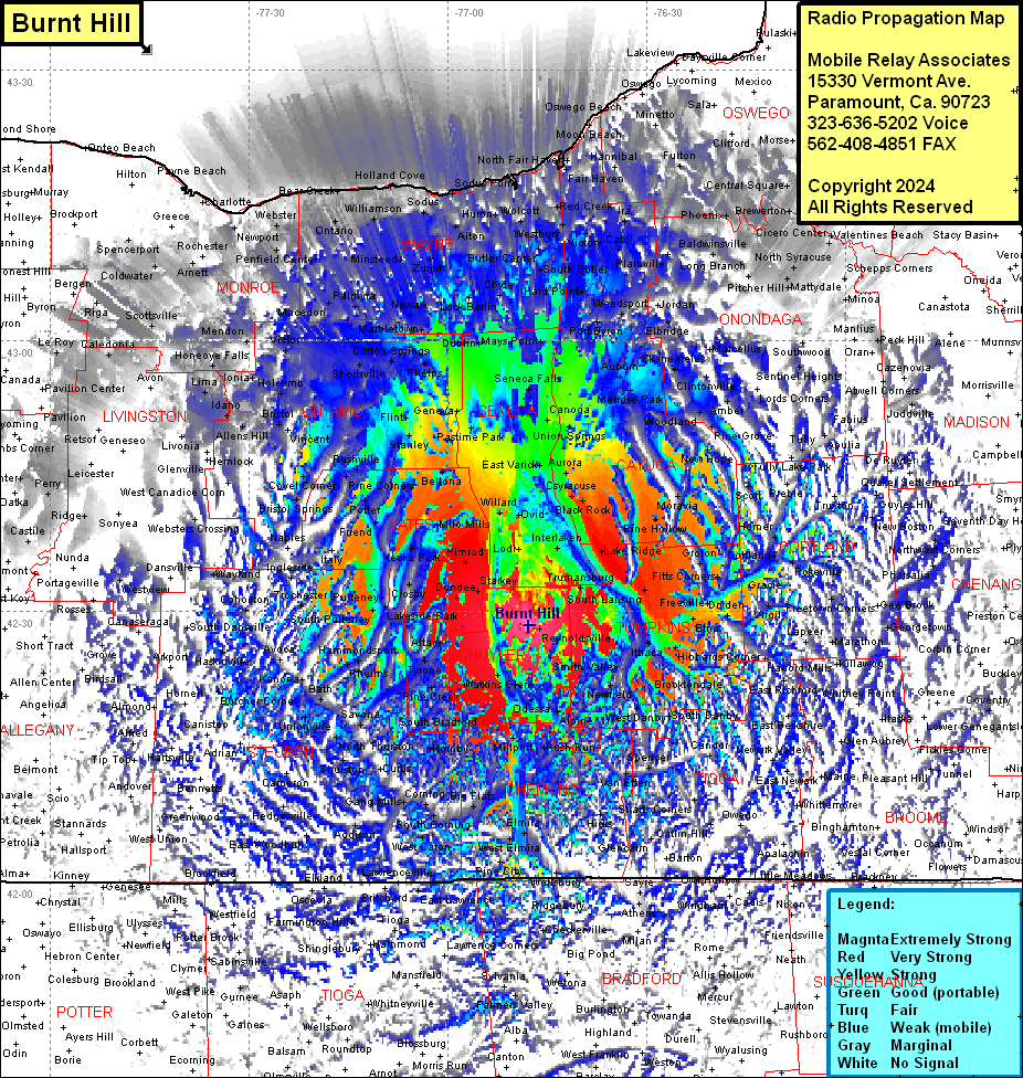 Site Coverage: Coverage of Schuyler, Chemung, Seneca, Wayne, Cayuga & Tompkins Counties, most of Onondaga, Tioga, Chemung, Cortland, Counties, some of Madison, Cattaraugus, Deleware, Otsego, Madison, Oswego, Chenango, Bloome, Allegany, Wyoming (NY), Genesee, Livingston, Monroe, Bradford (PA), Tioga (PA), Potter (PA), Lycoming (PA), Potter (PA), Susquehanna (PA), Sullivan (PA), Wyoming (PA) Counties