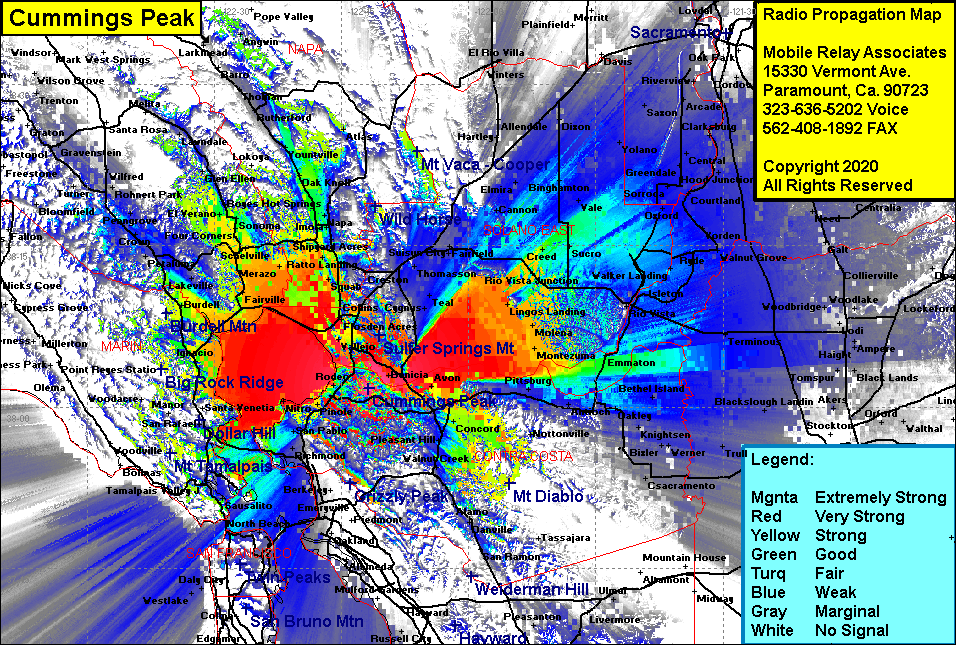 Site Coverage: Coverage of the San Francisco Bay area, specifically the north bay including Richmond, N Richmond, NcNears Beach, San Quentin, El Campo, Ft McDowell, Las Galinas, Marinwood, Burdell, Sears Point, Ignacio, Black Point, Fairville, McGill, Wingo, Merazo, Buchli, Dultin Landing, Stanley, Union, Salvador, Oak Knoll, Four Corners, Schelville, Big Bend, Ramal, El Verano, Port Chicago, Monsanto, Avon, Concord, Pleasant Hill, Bancroft, Walnut Creek, Clayton, Spoonbill, Collinsville, Monetzuma, Beldons Landing, Creed, Sucro, Dosier, San Joaquin Valley from Stockton in the south to Sacramento in the north