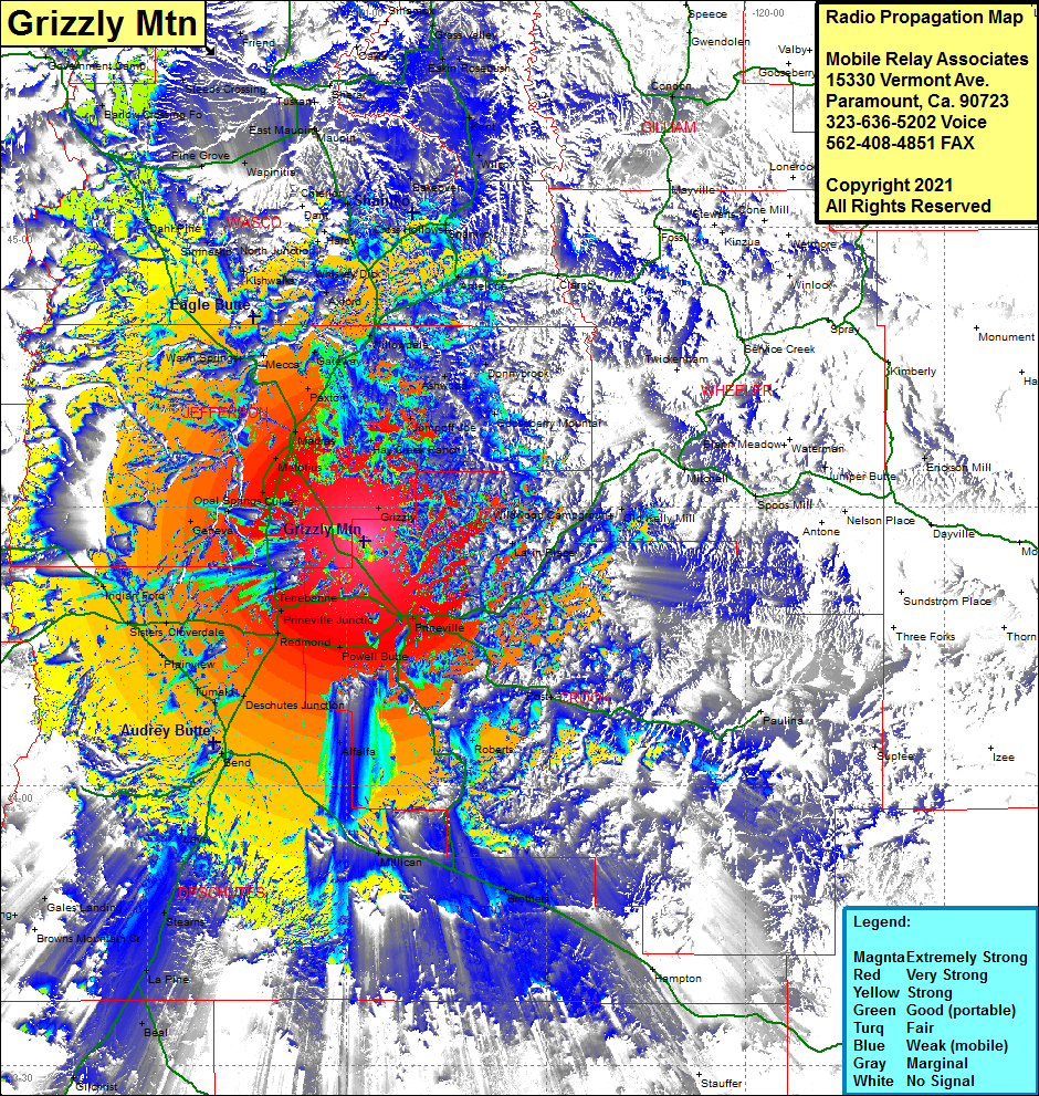 Site Coverage: Coverage of Prineville, Powell, Redmond, Prineville Jct, Terrabonne, Opal City, Opal Springs, Geneva, Metolius, Lakin Place, Old Kelly Mill, Grizzly, Hay Creek Ranch, Jumpoff Joe, Ashwood, Donnybrook, Madras, Masras Station, Paxton, Gateway, Willowdale, South Jct, Axford, Whiskey Dick, Hardy, North Jct, Dant, Mhells Crossing, Bakeoven, Wapinitia, Pine Grove, Dahl Pine, Simnasho, Kishwalks, Mecca, Warm Springs, Cloverdale, Sister, Plainview, Fumalo, Sisters, Indian Ford, Tumalo, Bend, Lava, Stearns, Gales Landing, Robideau Landing, Elk Lake, Jack Shelter, Beal, Crescent, Gilchrist, Millican, Brothers, Alfalfa, Roberts, Barlow Crossing, Steeds Crossing, Wamic, Bourbon, Kent, WIlcox, Donnybrook