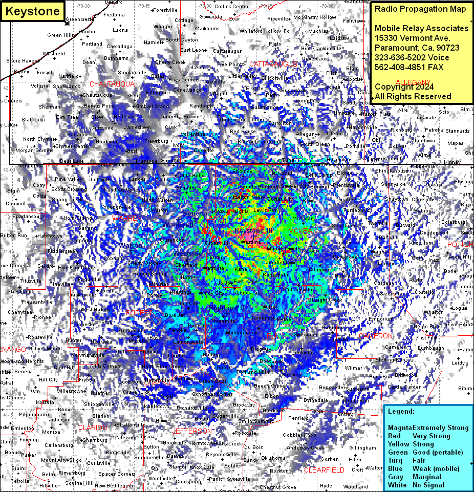 Site Coverage: Coverage of most of McKean, Warren, Forest & Elk Counties, some of Potter, Cameron, Clinton, Centre, Clearfield, Jefferson, Clarion, Venango, Mercer, Crawford, Erie, Armstrong, Indiana, Chautauqua (NY), Cattaraugus (NY) & Allegany (NY) Counties