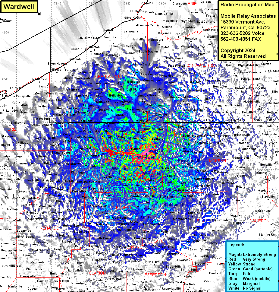 Site Coverage: Coverage of most of Warren, McKean, Forest & Chautauqua (NY) Counties, some of Elk, Cameron, Potter, Clearfield, Jefferson, Clarion, Venango, Mercer, Crawford, Erie, Armstrong, Indiana, Cattaraugus (NY), Allegany (NY), Wyoming (NY) & Erie Counties