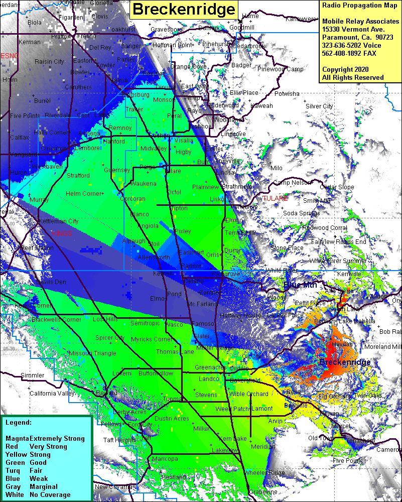 Site Coverage: Coverage of the San Joaquin Valley from Grapevine to Frenso, Havilah, Squirrel Mountain, Moreland Mill, Bena, Limon, Twin Oaks, Bakersfield, Portions of Hwy 58