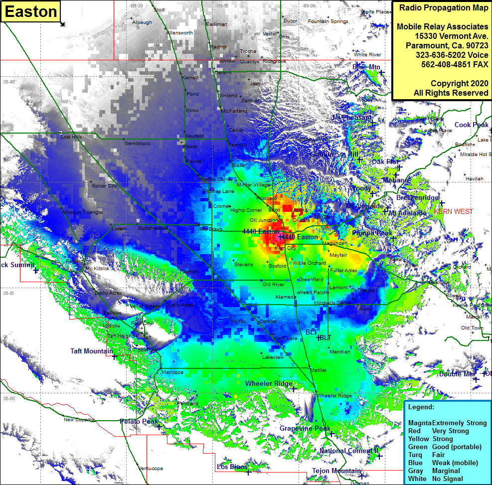 Site Coverage: Coverage of Bakersfield, Saco, Prospero, Cawelo, Thomas Lane, Hights Corner, Rio Bravo, Stevens, Old Rivers, Greenfield, Weed Patch, Lamont, Meridian, Lakeview, Mettler, Wheeler Ridge, Maricopa, Millux, Lokern, Tupman, Semitropic, Elmo, Pond, Kernell, Missouri Triangle