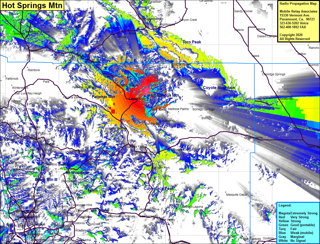 Site Coverage: Coverage of the northcentral portion of San Diego County including San Ysidro, Ranchito, Santa Ysabel, Oak Grove, Gyucca Valley, Radec, Coahuila, Anza, Sage, Murrieta, Murrieta Hot Springs, Winchester, Homeland, Thomas Mountain, Truckhaven, Ocotillo Wells, Kane Springs, Westmorland, Brawley, Rockwood, Fondo, Verdant, Calipatria, Estelle, Niland, Mundo, Wister, Iris, Niland, Tortuga, Amos, Glasgow, Glamis, Ruthven, Wiest, Curlew, Sandia, Fuller, Rico, Holtville, Imperial