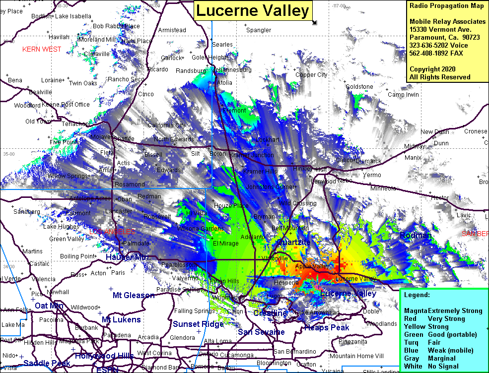 Site Coverage: Coverage of Lucerne Valley, Thom, Apple Valley, Victorville, Pinon Hills, El Mirage, Adelanto, Cushenbury, Leon, Bell Mountain, Houze Place, Mountain View, Helendale, Wild Crossing, Johnsons Corner, Grandview, Lockhart, Kramer Jct