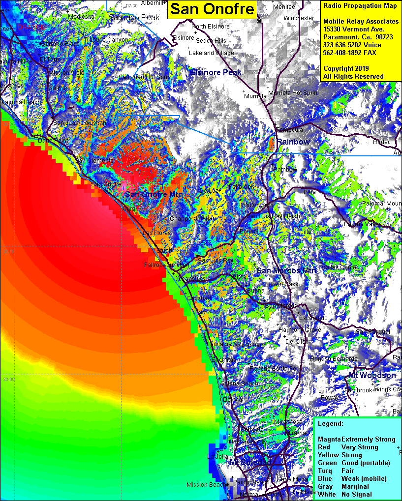 Site Coverage: Coverage of San Onofre, Agra, San Clemente, Dana Point, Las Flores, Fallbrook Jct, Oceanside, Escondido Jct, Carlsbad, Farr, Leucadia, Encinitas, Solano Beach, Del Mar