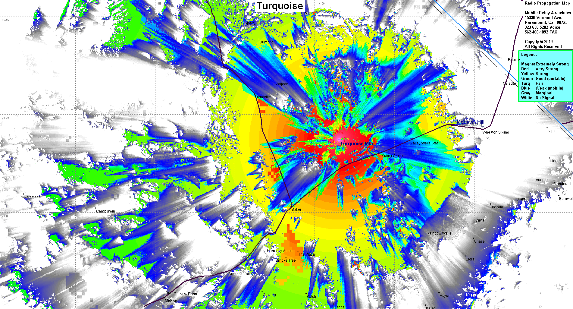 Site Coverage: Coverage from 15 miles southwest of Baker to Mountain Pass and north to Shoshone