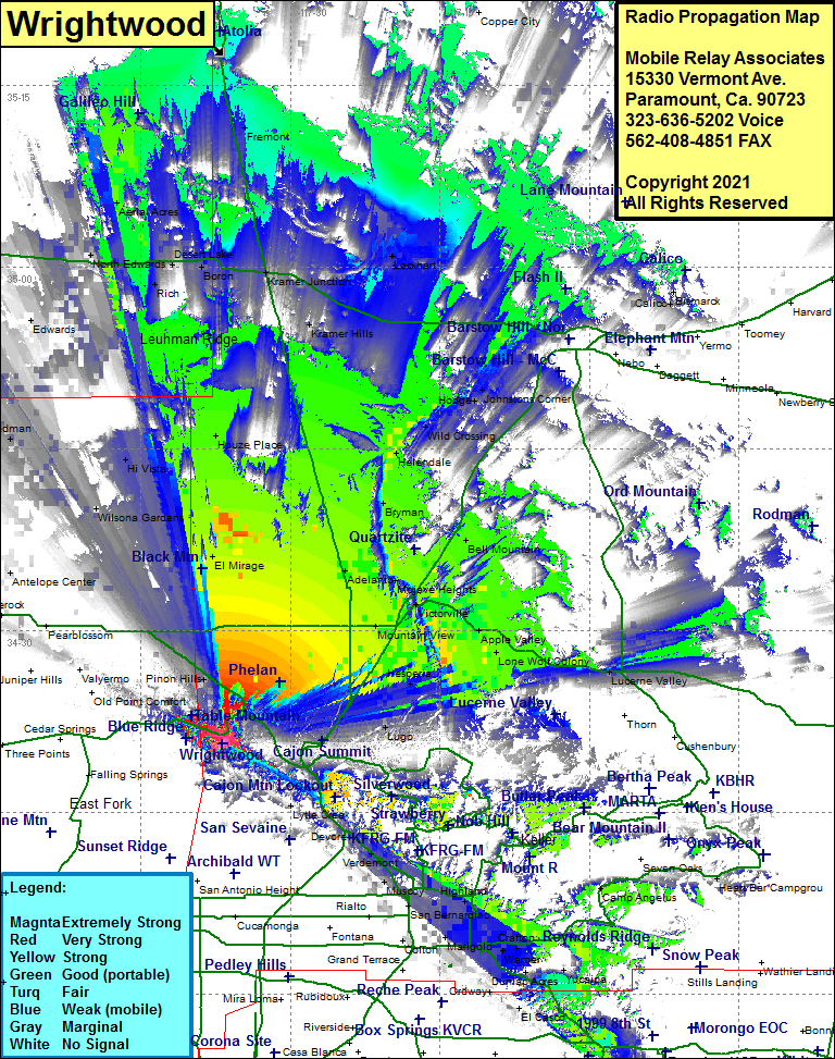 Site Coverage: Coverage of Wrightwood, Phelan, Pinion Hills, El Mirage, Adelanto, Mountain View, Oro Grande, Bryman, La Delta, Mojave Heights, Victorville, Frost, Thorn, Hesperia, Lugo, Apple Valley, Cotners Corner, Bell Mountain, Helendale, Wild Crossing, Hodge, Johnstons Corner, Lenwood, Grandview