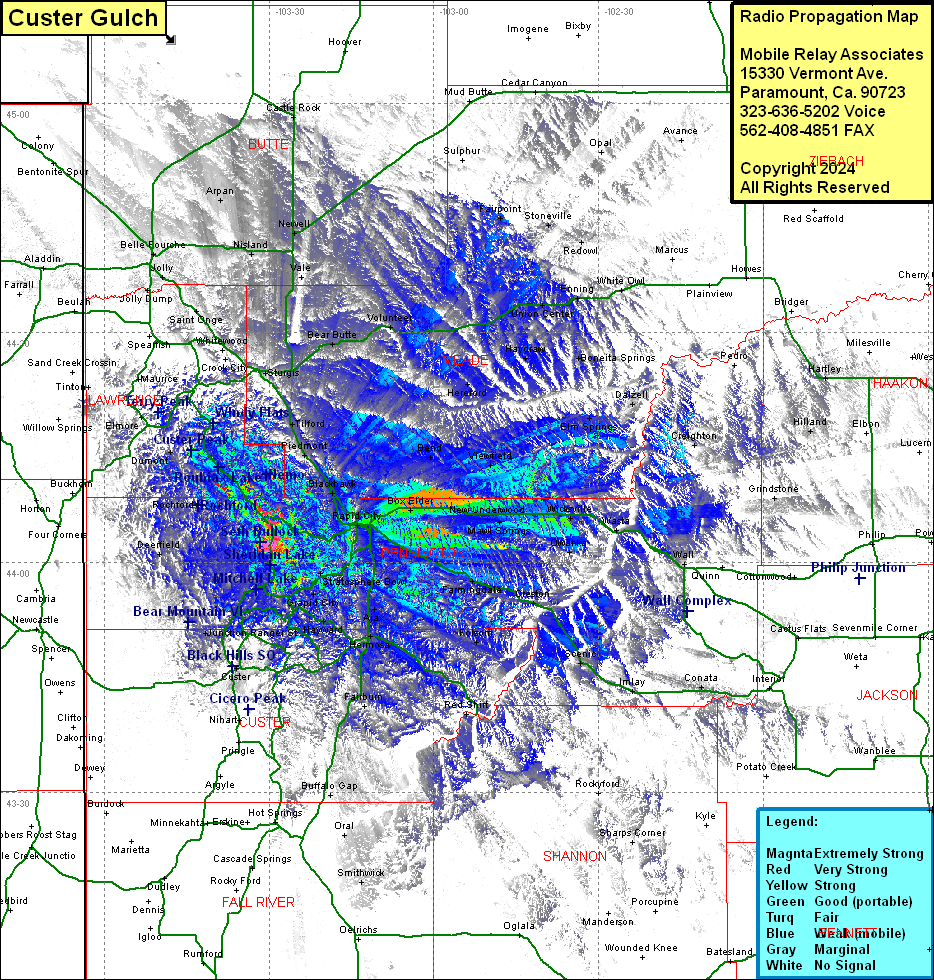 Site Coverage: Coverage of most of Lawrence, Pennington, Meade, Custer Counties, portions of Butte, Haakon, Ziebach, Jackson, Bennett, Shannon, Fall River, Weston & Crook Counties
