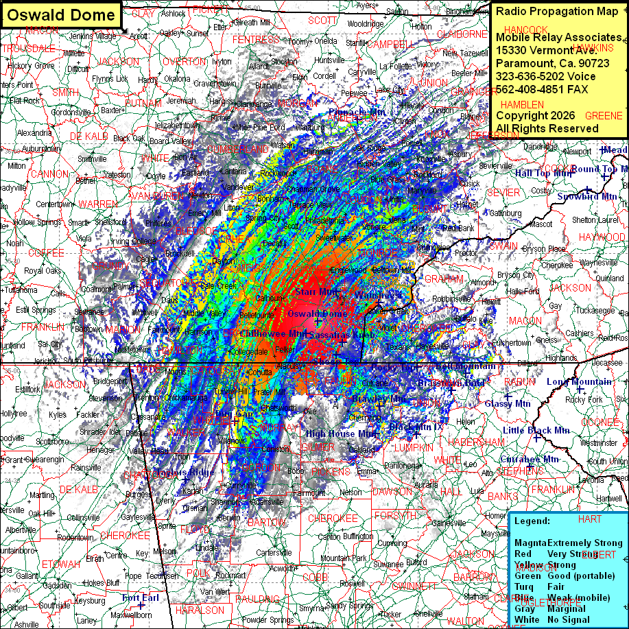 Site Coverage: Coverage of Polk, Bradley, McMinn, Monroe, Loudon, Roane, Meigs, Rhea, Hamilton, Whitfield (GA), Fannin (GA), Catoosa (GA) Counties, most of Knox, Blount, Sesquatchie, Bledsoe, Cumberland, Cherokee (NC), Union (GA), Gilmer (GA), Gordon (GA), Murray (GA), Walker (GA) Counties, some of Morgan, Anderson, Fentress, Clay (NC), Dade (GA), Chattooga (GA) Counties, sporatic coverage of Overton, Putnam, White, Van Buren, Warren, Franklin, DeKalb, Putnam, Overton, Scott, Campbell, Union, Claiborne, Grainger, Union, Hamblen, Jefferson, Sevier, Cocke, Hawkins, Cannon, Graham (NC), Swain (NC), Jackson (NC), Haywood (NC), Jackson (NC), Macon (NC), Polk (GA), Bartow (GA), Cherokee (GA), Forsyth (GA), White (GA), Habersham (GA), Dawson (GA), Rabun (GA), Jackson (AL), DeKalb (AL), Cherokee (AL), Cleburne (AL) Counties