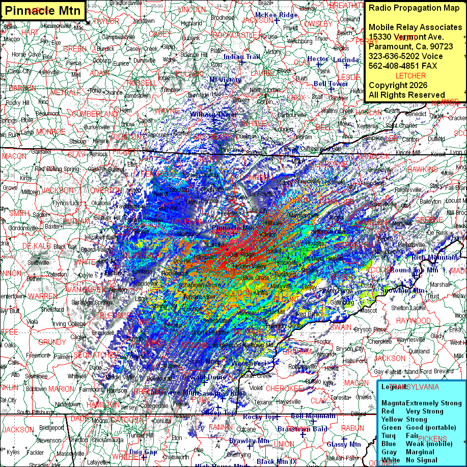 Site Coverage: Coverage of Anderson, Morgan, Union, Knox, Loudon, Blount, Monroe, McMinn, Meigs, Rhea, Grainger, Jefferson Counties, most of Scott, Campbell, Claibourne, Cumberland, Fentress Counties, some of Polk, Bradley, Hamilton, Bledsoe, McCreary (KY) Counties and sporatic coverage of Overton, Jackson, Clay, Smith, DeKalb, Warren, White, Grundy, Sesquatchie, Marion, Macon, Pickett, Hancock, Hawkins, Monroe (KY), Cumberland (KY), Adair (KY), Metcalf (KY), Clinton (KY), Sussell (KY), Casey (KY), Wayne (KY), Pulaski (KY), Whitley (KY), Knox (KY), Laurel (KY), Rockcastle (KY), Lincoln (KY), Casey (KY), Clay (KY), Leslie (KY), Harlan (KY), Bell (KY), Lee (VA), Wise (VA), Scott (VA), Cherokee (NC), Graham (NC), Swain (NC), Haywood (NC), Madison (NC), Jackson (NC), Macon (NC), Clay (NC), Catoosa (GA), Dade (GA), Walker (GA), Whitfield (GA), Murray (GA), Fannin (GA), Union (GA) Counties
