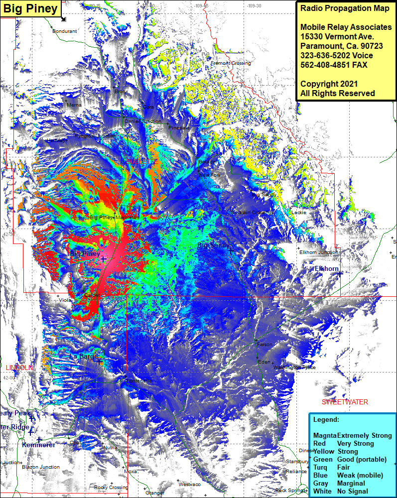 Site Coverage: Coverage of Big Piney, Marbleton, Halfway, Ryegrass Junction, Merna, Bronx, Cora, Daniel Junction, Pinedale, Boulder, New Fork, Big Sandy, Buckskin Crossings, Leckie, Farson, Eden, Washington Place, Fontenelle, Calpet, Viola