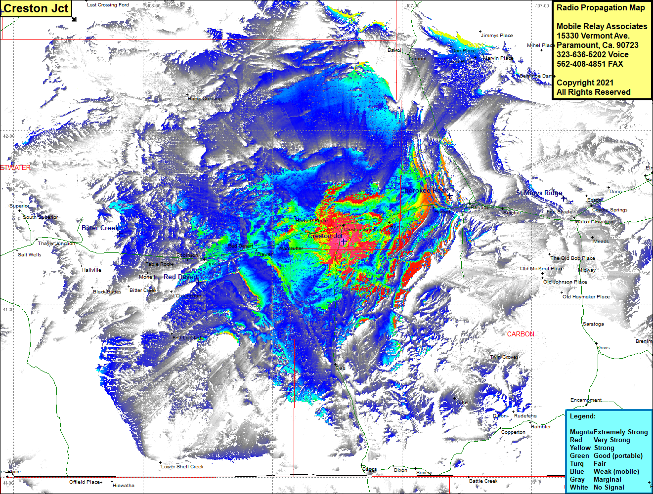Site Coverage: Coverage of Bairoil, Lamont, Dorr Place, Marvin Place, Cherokee, Riner, Hadsell, Rawlins, Sinclair, Fort Steele, Meads, Modway, Dad, Twin Groves, Tullis, Fort LaClede, J O Junction, Monell, Table Rock, Robinson, Tipton, Red Desert, Frewan, Warmsutter, Hadsell Place, Rocky Crossing